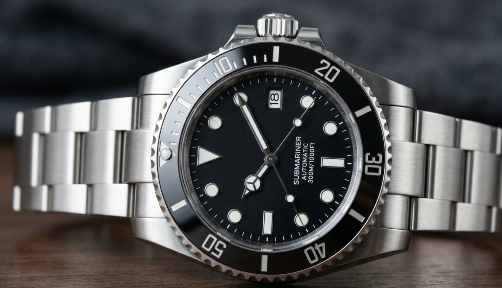 Why it works: Black is the color of utility. Historically, black dials were used for “tool watches”—divers, pilots, and military personnel—because white hands pop against a dark background. Today, a black dial on a stainless steel bracelet is the ultimate “GADA” watch (Go Anywhere, Do Anything).